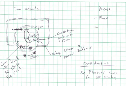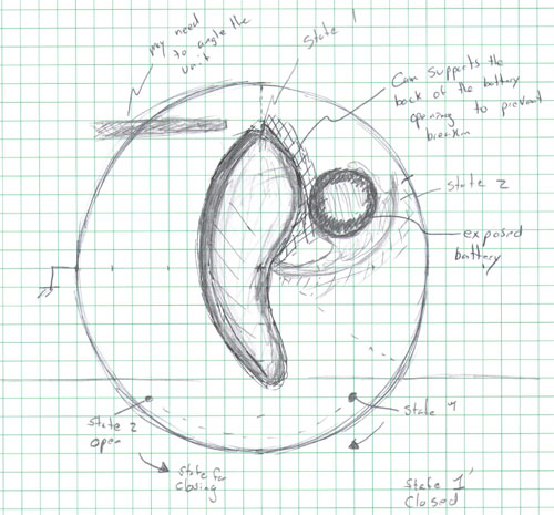 Schematic of opening of the hearing aid from my design notebook.