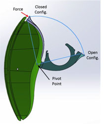 Details of the hearing aid device where limited. We were given one hearing aid per group, and two non-dimensioned drawings hardcopy only (one top view and one side view). From experience, I knew that no matter the design we needed to have the hearing aid in CAD form to be able to 3D print custom components. Overnight, I used a caliper in conjunction with the two drawings to create a CAD of the device. How was it done? I took a photo with my phone of the two drawings. I took the images and used Omax Layout to draw lines and splines on top of the images.The dxf file was then imported into Solidworks and started to create the CAD drawing. The drawing was scaled knowing the dimensions of the battery. What I produced in a period of four hours is a functional CAD that was used to find the pivot point, lever arm, and part envelope. To see an exceprt of my desing notebook click here.