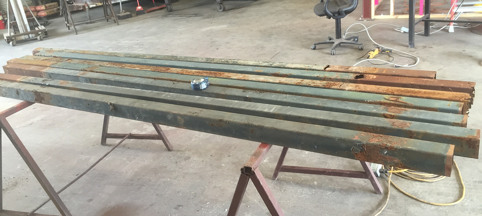 When I received six 10M flanges (~1000 lb each), I needed to consolidate the flanges to minimize space. I scavenged the material from old fence posts and made the flange holder shown below. Details of project.