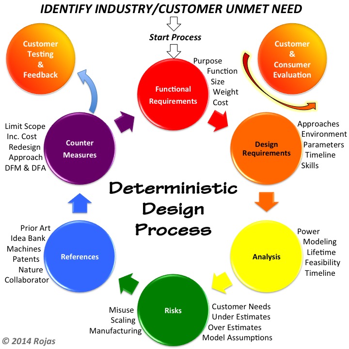 There are many methods and processes to design a product. Diversity is beautiful. The following is just the method that I have put together based on integrating all of my personal experiences. This method materialized in an attempt to explain in a video to college level students how I design/evaluate a product from brainstorming towards commercialization.