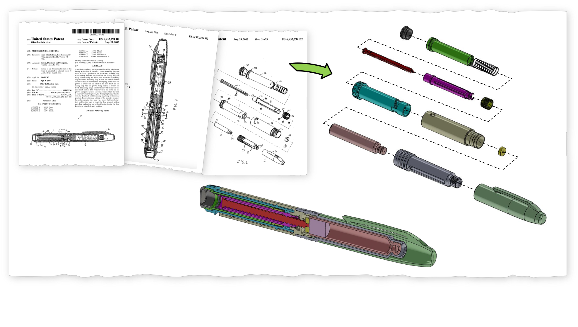 One of the skills that a mechanical engineer should master is interpreting engineering drawings. Engineering drawings have several layers: 1) part geometry, 2) manufacturing (i.e. welding), 3) tolerances, etc. One way to begin to exercise part geometry interpretation is by examining patents. Patent drawings offer a plethora of examples to practice drawing interpretation.