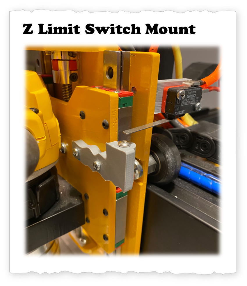 Upgrade 4: When I saw the number of parts to mount the limit switches, I just thought: "why don't I just 3D print a little bracket for the switch itself and one for the post. It took a little bit of brain storming...