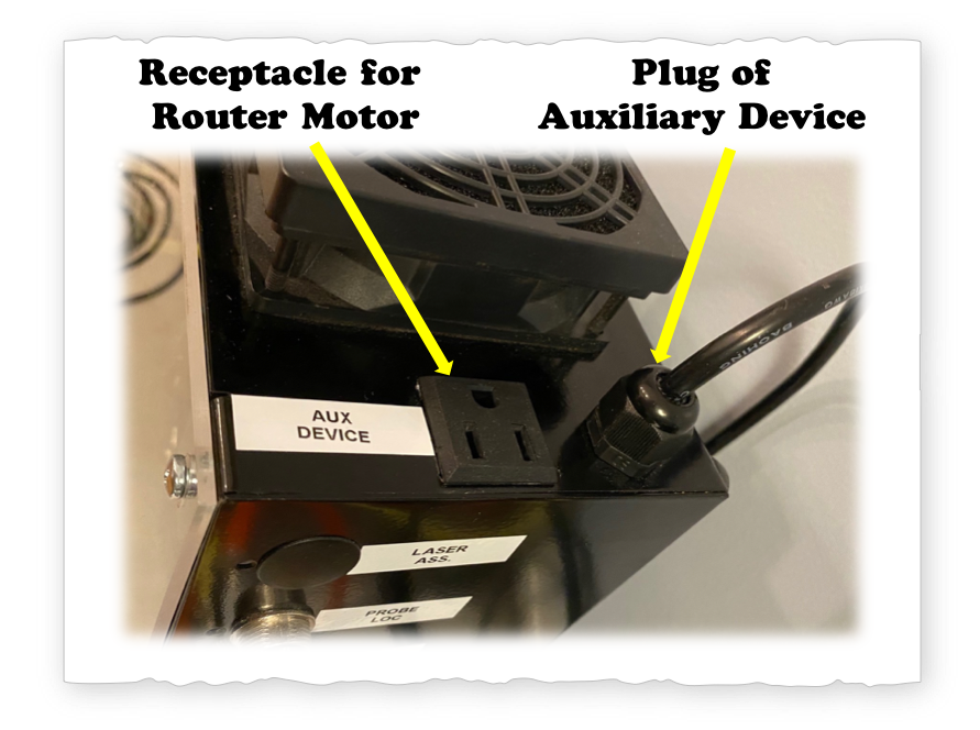 So I installed a second outlet cable for the auxiliary device (aka router motor). While I most likely could have used power from the existing power cable that goes to the power supplies, I did not want to risk something going wrong and burning up drivers accidentally from the power demands of the router. FUNNY things can happen when we don't know all of the wiring details or power requirements. So move forward CAREFULLY, with safety systems in place.
