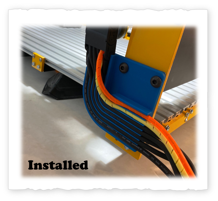 There is something about having a bundle of wires exiting a wire guide that makes me smile. I always think: "make it pretty and clean." In the process of moving the Y axis cable management system I also decided to clean up the wires as they exit the cable management system. The 3D plastic piece is mounted to the machine via two screws that are already part of the machine.